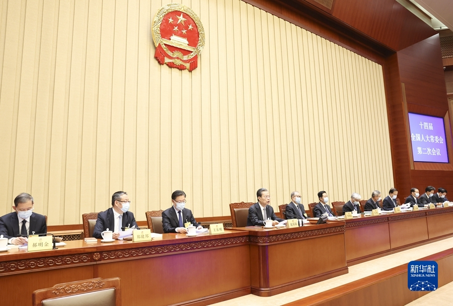 4月26日上午,十四届全国人大常委会第二次会议在北京人民大会堂闭幕。赵乐际委员长主持闭幕会。 新华社记者 庞兴雷 摄